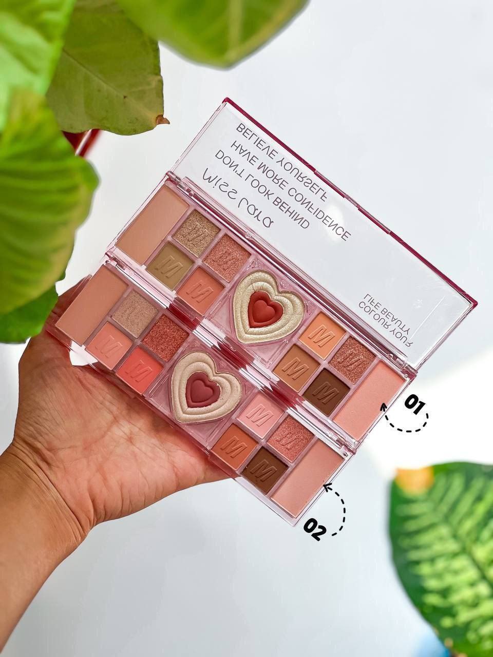 دارای 2 طیف رنگ بندی بسیار عالی ✨دارای رنگهای گلایتری همراه با شاین ومات 💥پرفروش ترین سایه سال💥 🌙زیباترین رنگهای سال 🌏با پیگمنتی عالی وماندگاری بالا پالت سایه 11 رنگ قلبی میس لارا